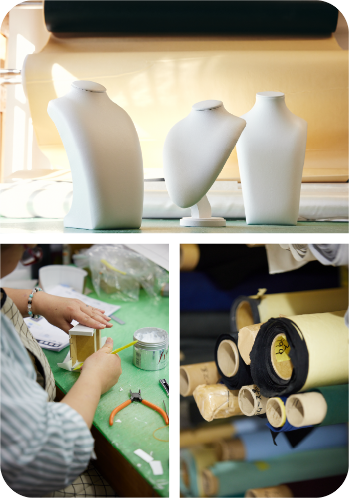 横浜に戻った父は、祖父母とともに、ほとんど仮設同然の倉庫から事業をスタートさせました。従業員がすぐに辞めてしまう苦しい時期もありましたが、家族経営で一つずつ課題を乗り越えながら、ジュエリーケースからディスプレイ製作へと着実に領域を広げていきました。